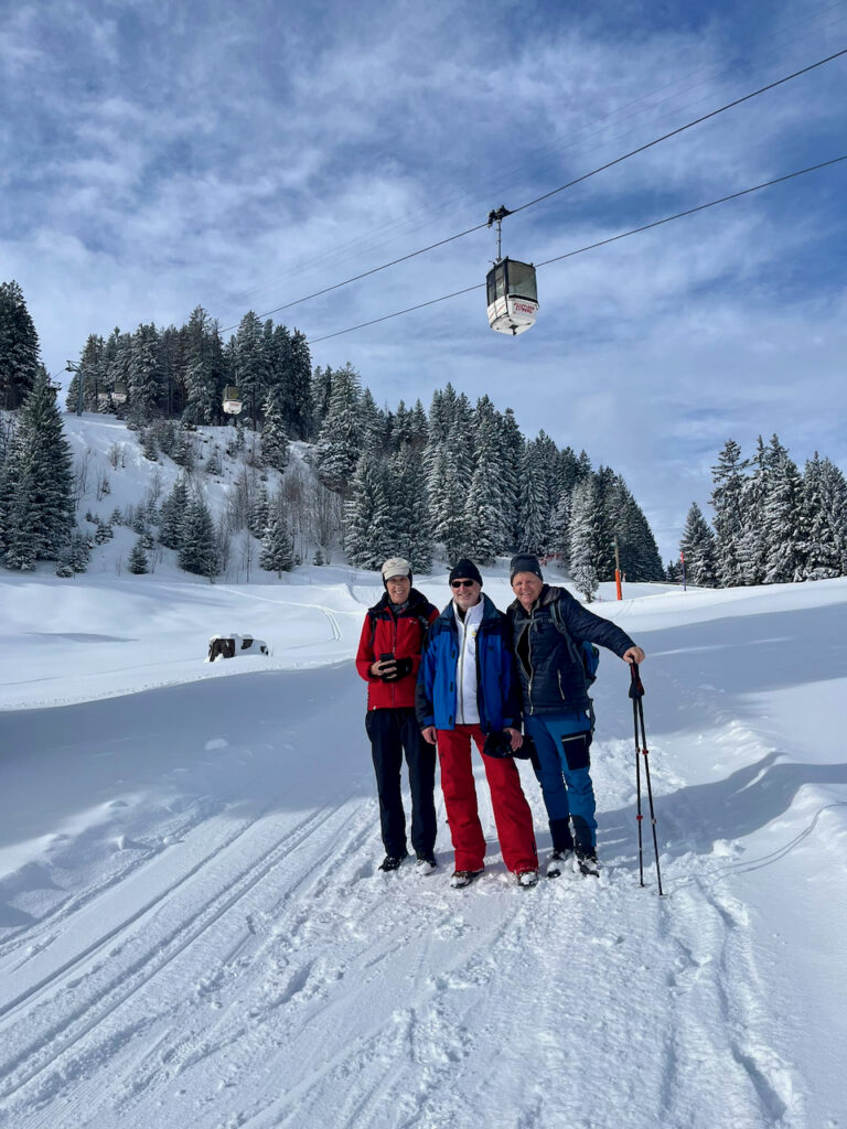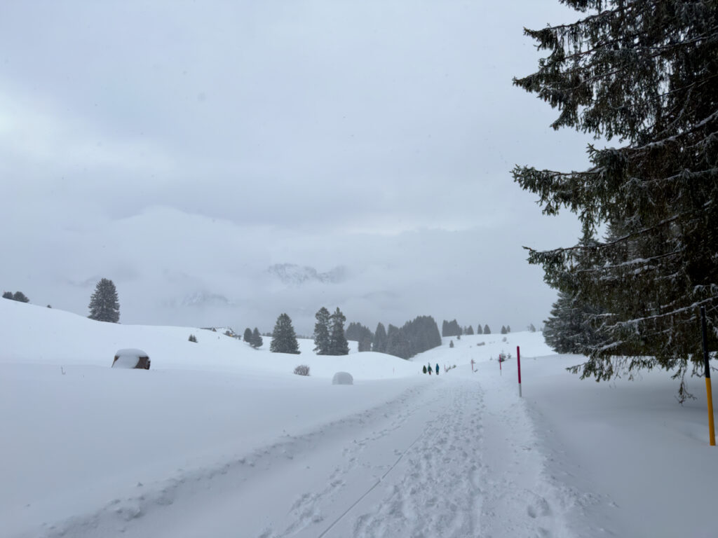 Der Bus fuhr pünktlich in Heerbrugg los und brachte uns trotz Schnee auf der Strasse sicher bis auf den Flumserberg. Dort folgte jedoch gleich die nächste Nachricht: Wegen Schneefall und Lawinengefahr würden nur ganz wenige Skilifte fahren. Nach einem ersten Kaffee und einem kurzen Austausch war schnell klar: Wir passen den Plan an. Statt Ski zu fahren, nutzten wir den Tag für Wanderungen und Spaziergänge – und wir entschieden, die Rückfahrt bereits auf 14.00 Uhr vorzuverlegen (anstatt wie ursprünglich geplant um 16.00 Uhr).