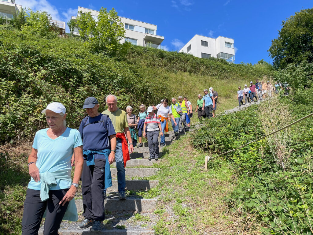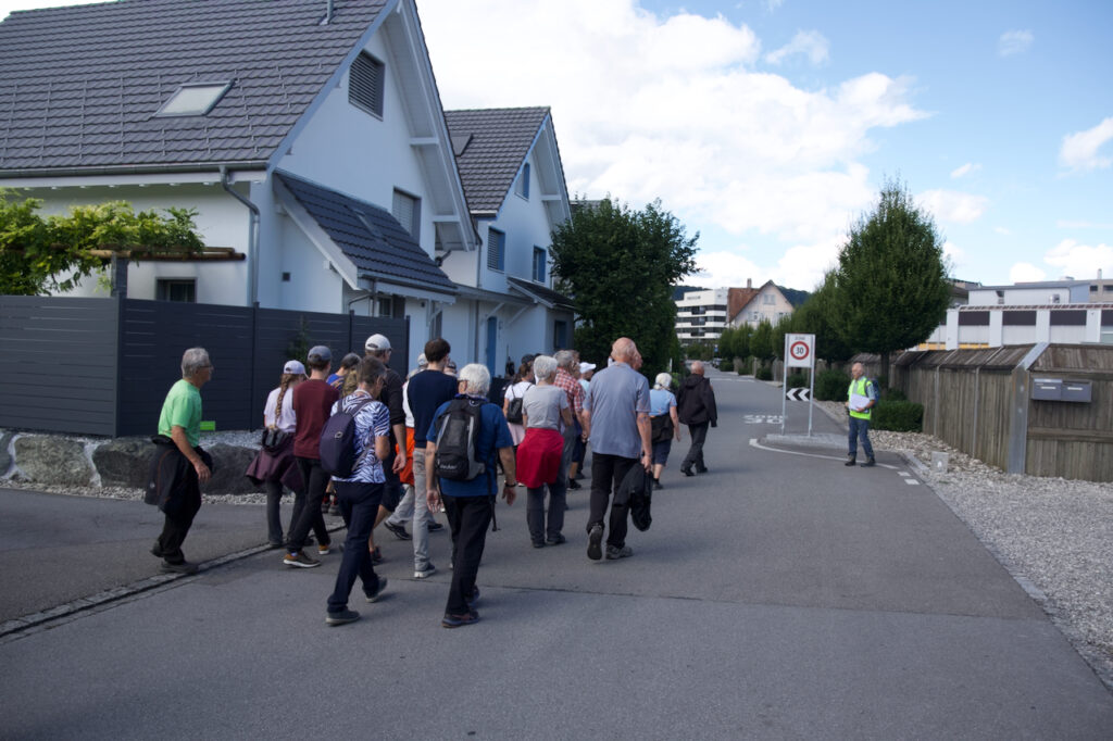 Die Teilnehmenden konnten zwischen zwei Varianten wählen: Eine Gruppe wanderte über den Brändlihang und den Hümpeler, die zweite nahm den etwas kürzeren Weg über das Schulhaus Sonnenberg bis oberhalb des Weinguts Schmidheiny. Danach trafen sich beide Gruppen wieder und setzten die gemeinsame Wanderung fort. Insgesamt dauerte die Tour rund 3 bis 3.5 Stunden (ca. 7.5 km) – und bot neben informativen Einblicken auch schöne Ausblicke und „Höhenflüge“ rund um Heerbrugg.