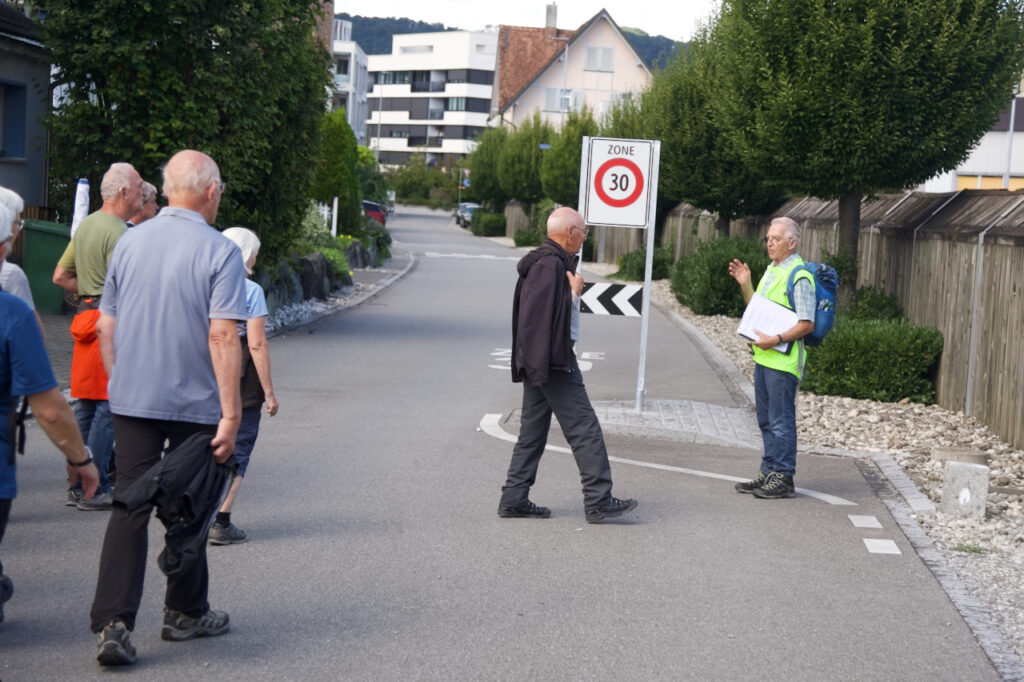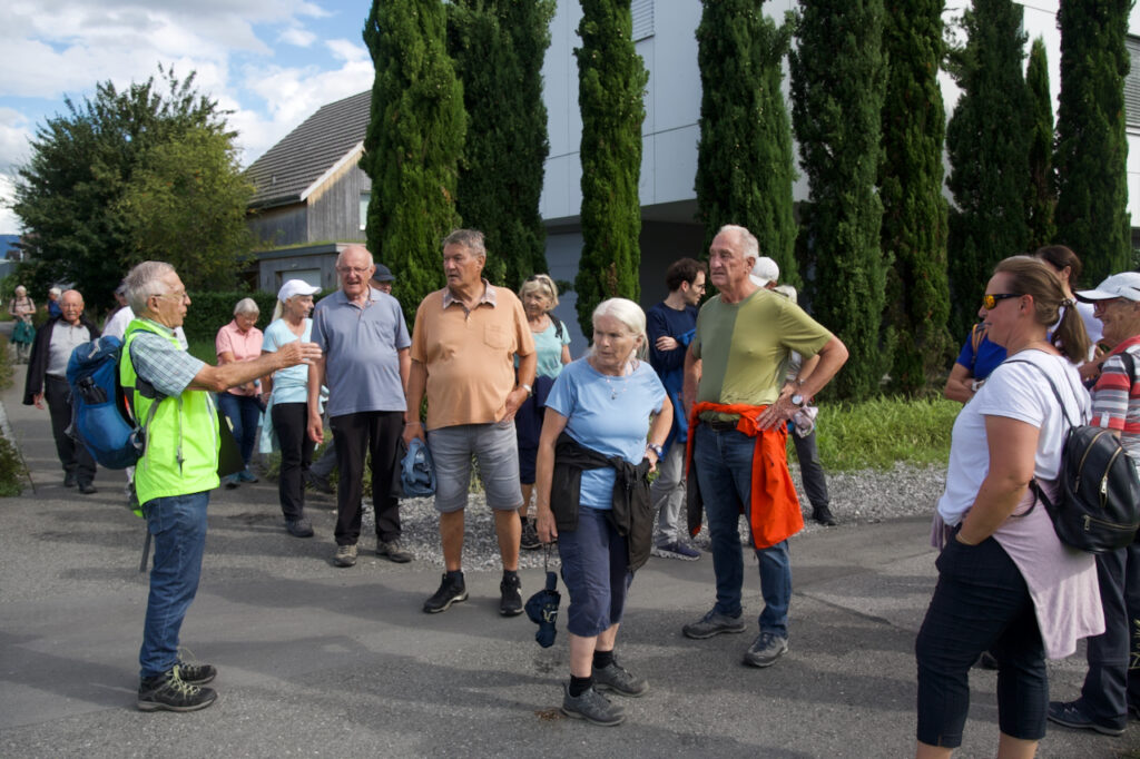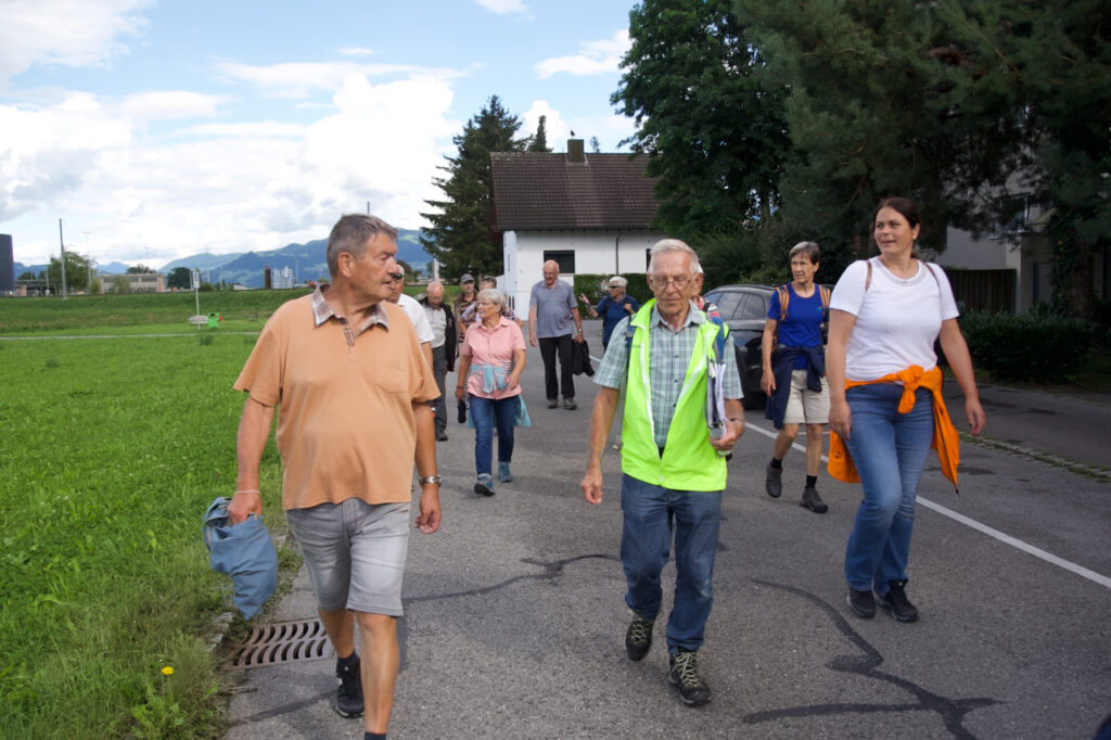 Treffpunkt war um 13.30 Uhr beim Pavillon der Primarschulgemeinde Heerbrugg. Nach der Begrüssung durch ProHeerbrugg führte Wanderleiter Meinrad Egger die Teilnehmenden mit viel Fachwissen und spürbarer Begeisterung durch den Nachmittag. Die Wanderung war von ihm hervorragend vorbereitet und angenehm geführt – mit gut gewählten Stopps, verständlichen Erklärungen und vielen spannenden Details entlang der Route.