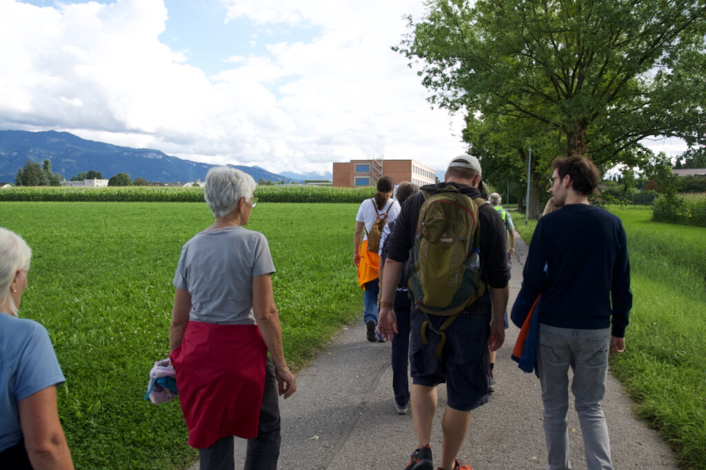 Unterwegs wurde sichtbar, wie unterschiedlich Grenzen sein können: Politische Gemeindegrenzen, Schulgemeinden, Kirchgemeinden und sogar der Postkreis „Heerbrugg“ überlagern sich nicht einfach deckungsgleich, sondern erzählen jeweils ihre eigene Geschichte. Als „eigentliche“ Grenze der Wanderung dienten die Grenzen der ehemaligen Primarschulgemeinde Heerbrugg – ein Bezugspunkt, der für viele überraschende Aha-Momente sorgte.